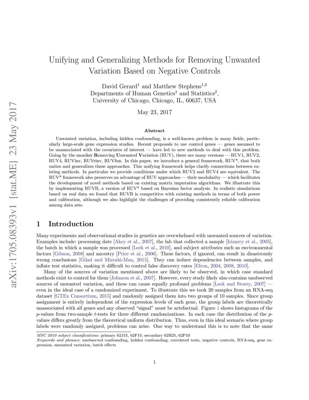 Unwanted variation, including hidden confounding, is a well-known problem in many fields, particularly large-scale gene expression studies. Recent proposals to use control genes --- genes assumed to be unassociated with the covariates of interest --- have led to new methods to deal with this problem. Going by the moniker Removing Unwanted Variation (RUV), there are many versions --- RUV1, RUV2, RUV4, RUVinv, RUVrinv, RUVfun. In this paper, we introduce a general framework, RUV*, that both unites and generalizes these approaches. This unifying framework helps clarify connections between existing methods. In particular we provide conditions under which RUV2 and RUV4 are equivalent. The RUV* framework also preserves an advantage of RUV approaches --- their modularity --- which facilitates the development of novel methods based on existing matrix imputation algorithms. We illustrate this by implementing RUVB, a version of RUV* based on Bayesian factor analysis. In realistic simulations based on real data we found that RUVB is competitive with existing methods in terms of both power and calibration, although we also highlight the challenges of providing consistently reliable calibration among data sets.