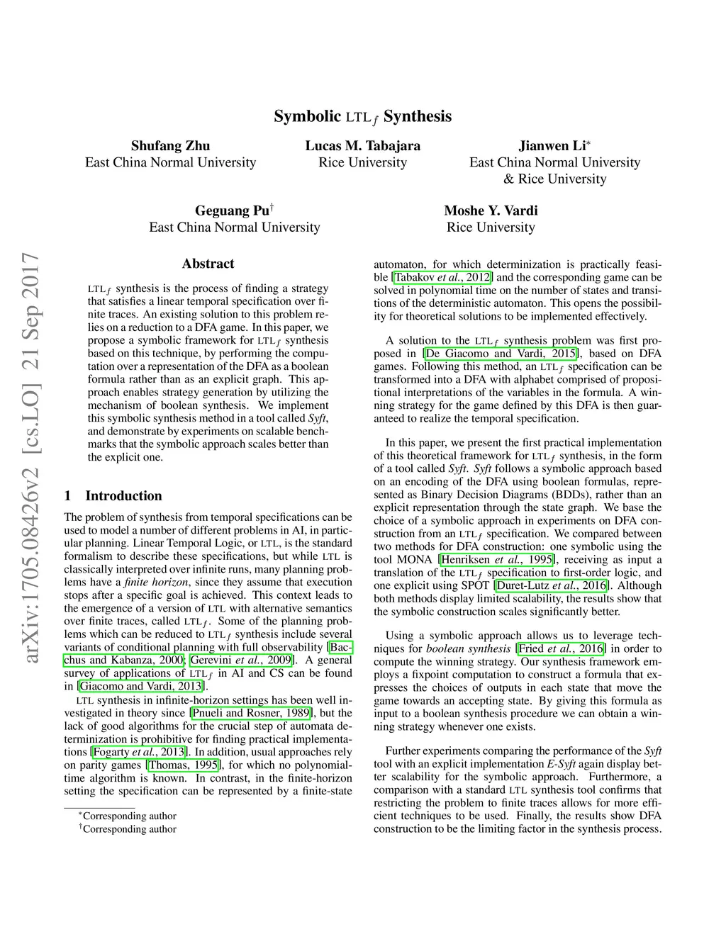 Symbolic LTLf Synthesis