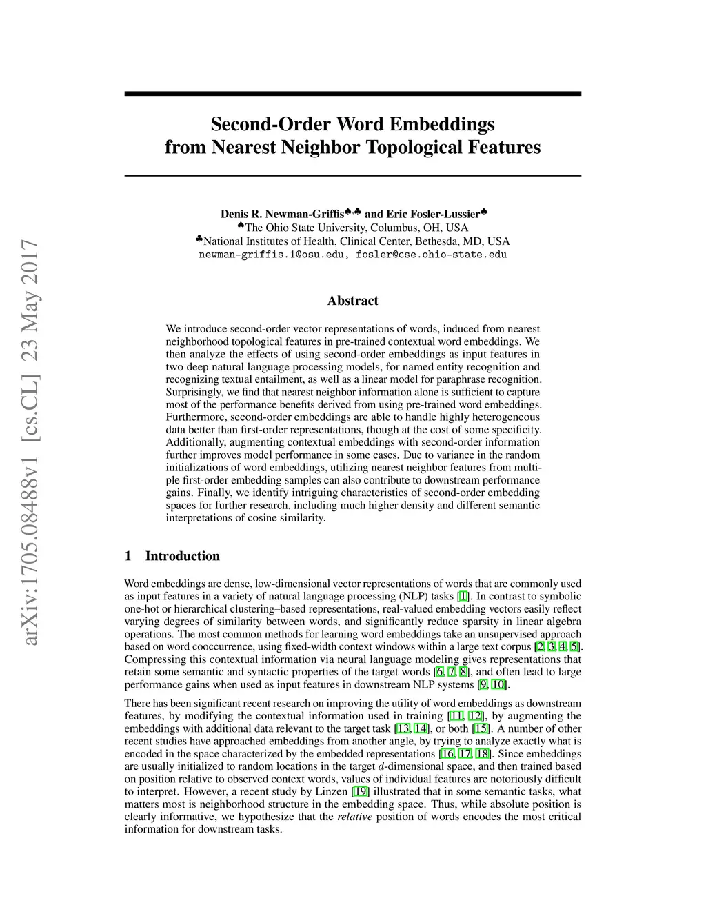Second-Order Word Embeddings from Nearest Neighbor Topological Features
