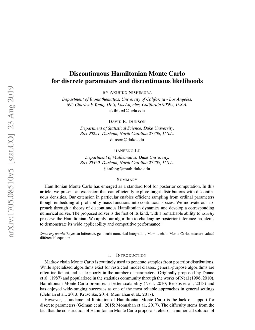 Discontinuous Hamiltonian Monte Carlo for discrete parameters and
