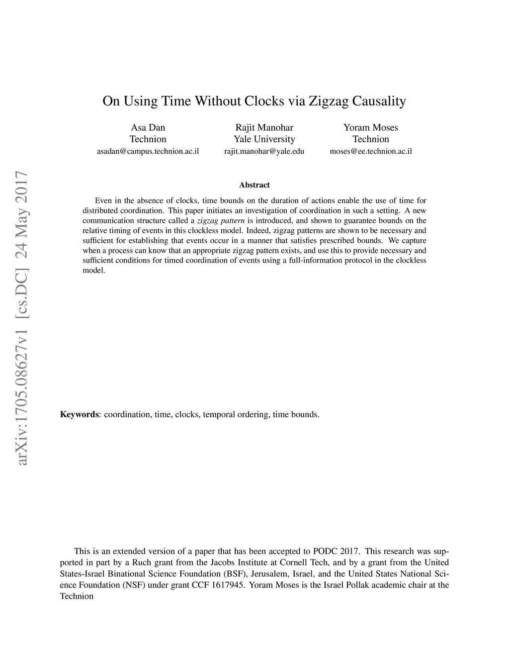 Even in the absence of clocks, time bounds on the duration of actions enable the use of time for distributed coordination. This paper initiates an investigation of coordination in such a setting. A new communication structure called a zigzag pattern is introduced, and shown to guarantee bounds on the relative timing of events in this clockless model. Indeed, zigzag patterns are shown to be necessary and sufficient for establishing that events occur in a manner that satisfies prescribed bounds. We capture when a process can know that an appropriate zigzag pattern exists, and use this to provide necessary and sufficient conditions for timed coordination of events using a full-information protocol in the clockless model.