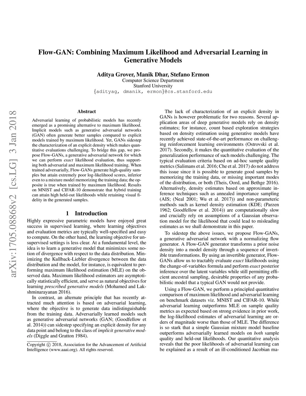 Flow-GAN: Combining Maximum Likelihood and Adversarial Learning in