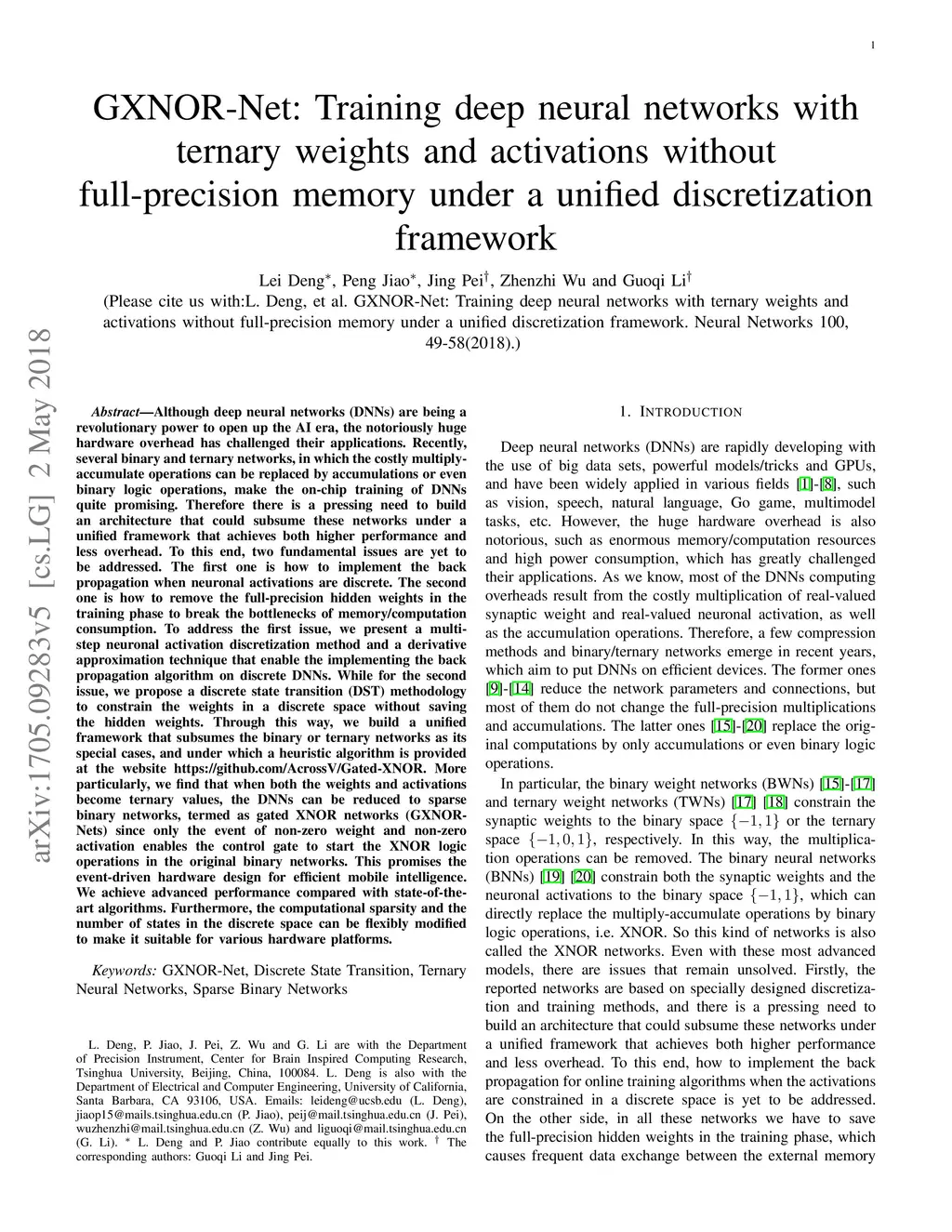 GXNOR-Net: Training deep neural networks with ternary weights and