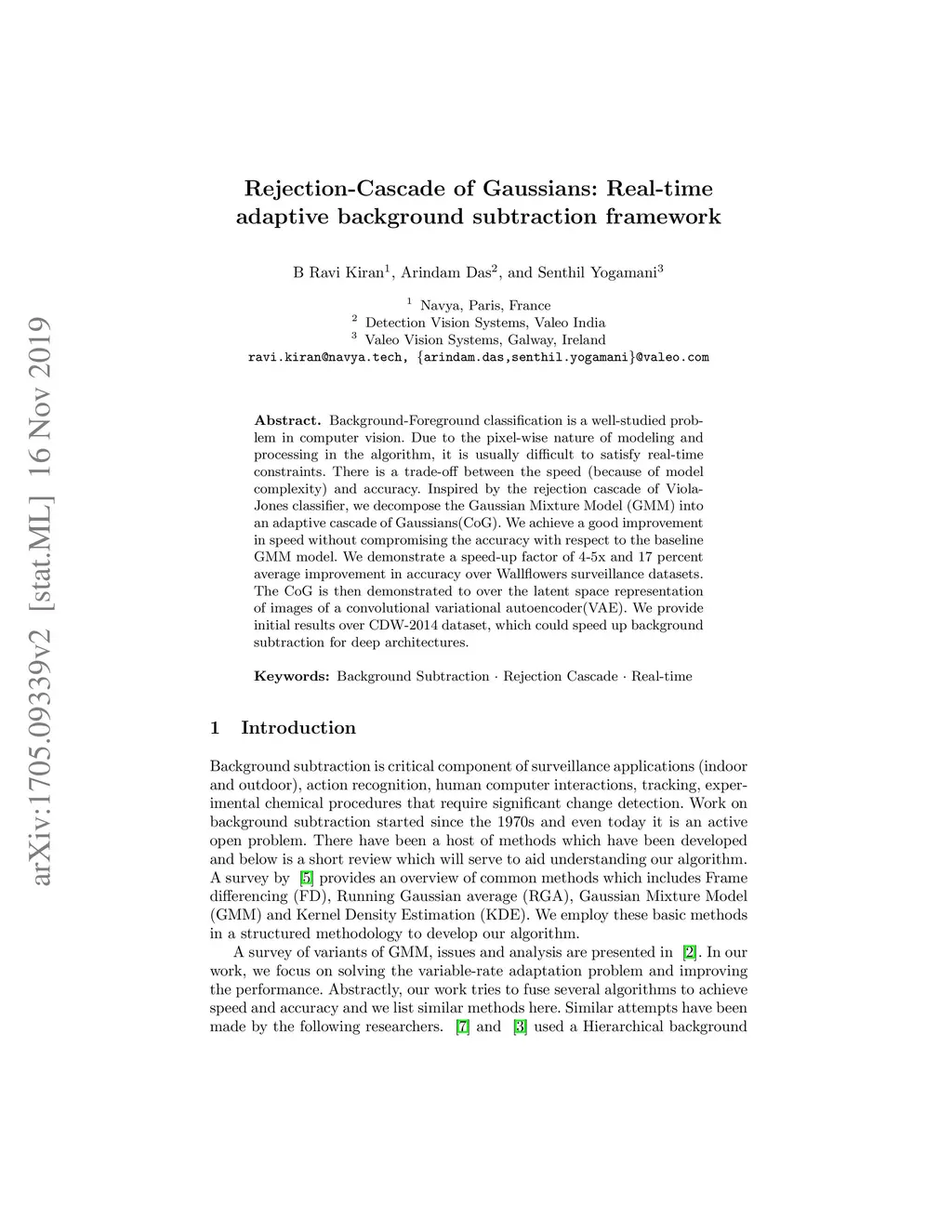 Rejection-Cascade of Gaussians: Real-time adaptive background
