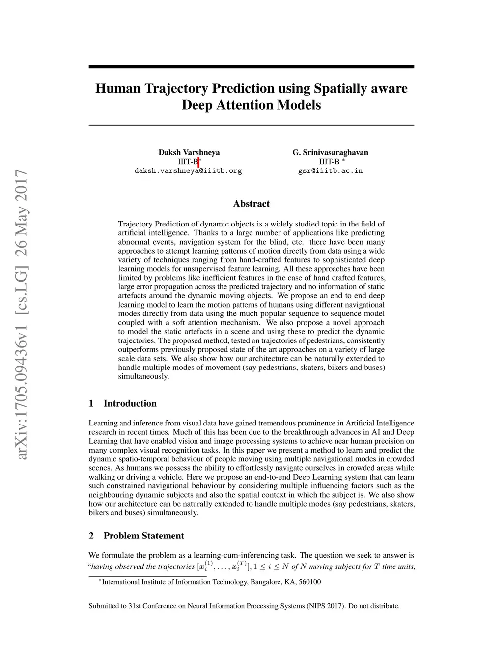 Human Trajectory Prediction using Spatially aware Deep Attention Models