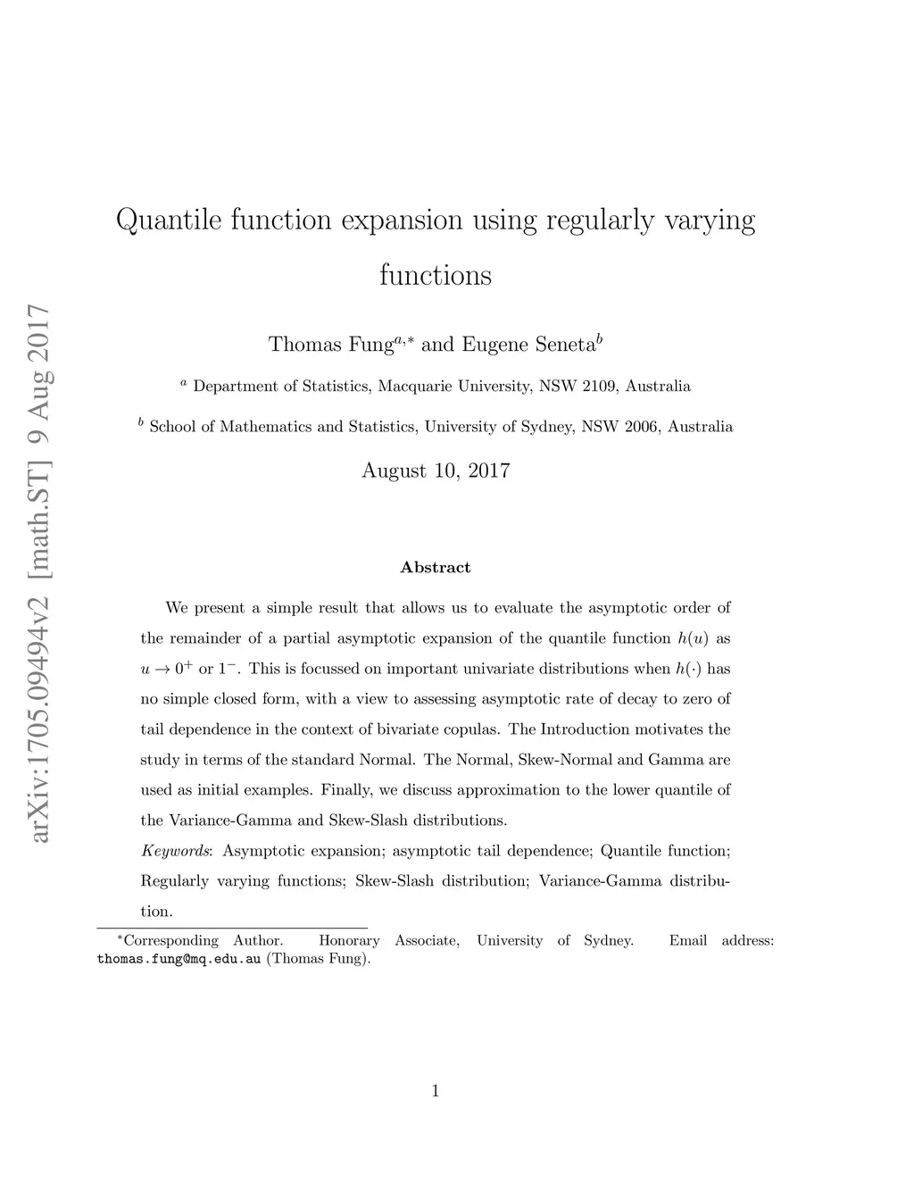 We present a simple result that allows us to evaluate the asymptotic order of the remainder of a partial asymptotic expansion of the quantile function as or . This is focussed on important univariate distributions when has no simple closed form, with a view to assessing asymptotic rate of decay to zero of tail dependence in the context of bivariate copulas. The Introduction motivates the study in terms of the standard Normal. The Normal, Skew-Normal and Gamma are used as initial examples. Finally, we discuss approximation to the lower quantile of the Variance-Gamma and Skew-Slash distributions.