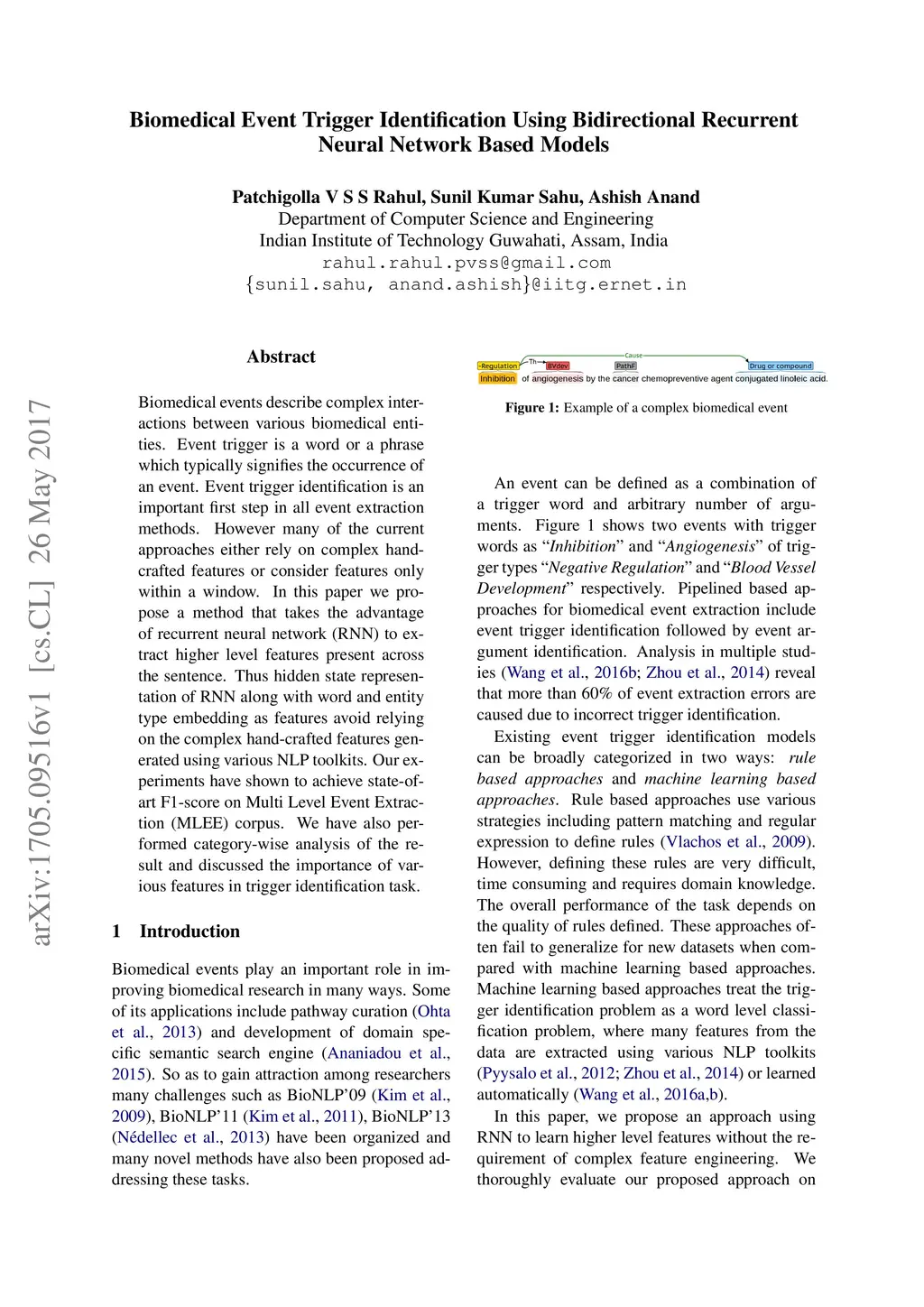 Biomedical Event Trigger Identification Using Bidirectional Recurrent