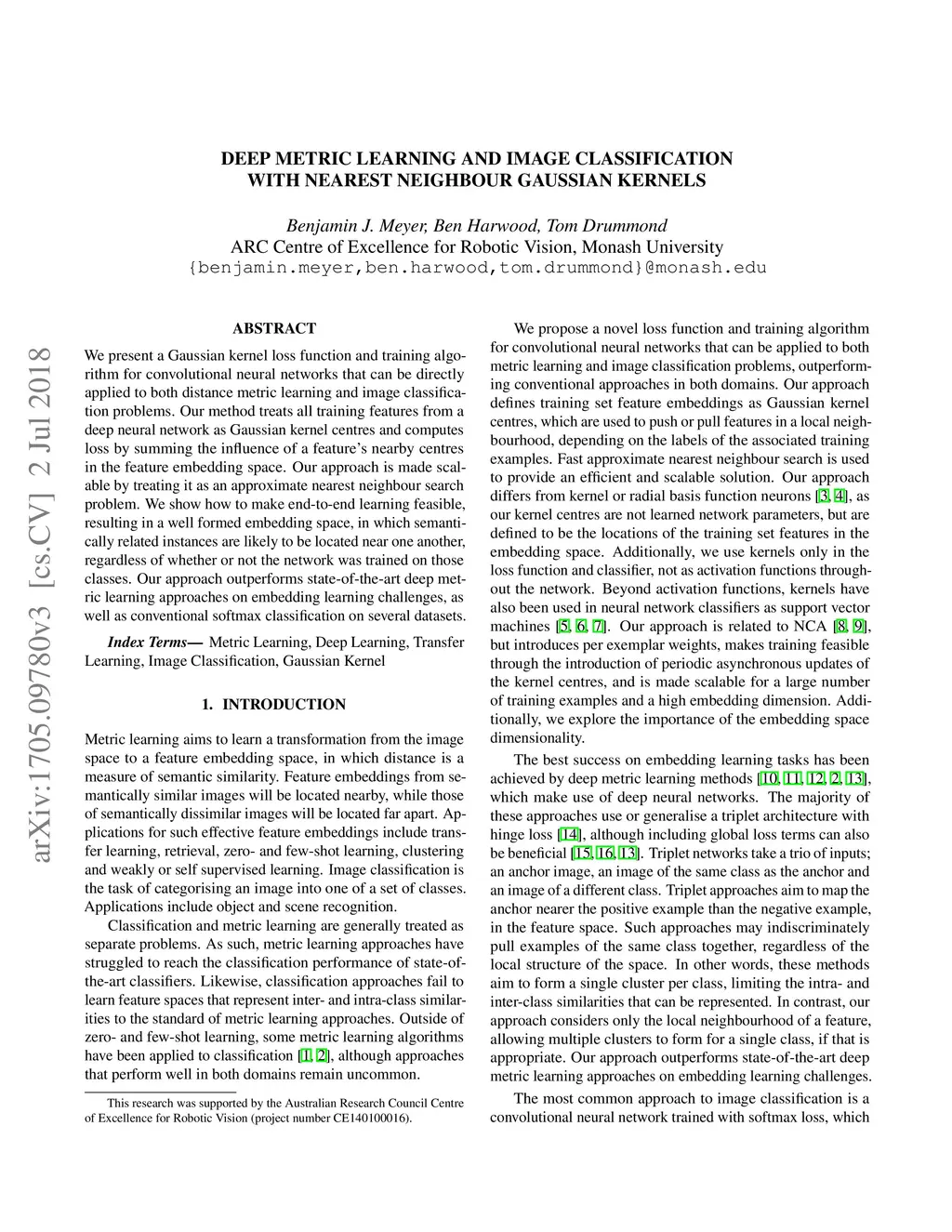 We present a Gaussian kernel loss function and training algorithm for convolutional neural networks that can be directly applied to both distance metric learning and image classification problems. Our method treats all training features from a deep neural network as Gaussian kernel centres and computes loss by summing the influence of a feature's nearby centres in the feature embedding space. Our approach is made scalable by treating it as an approximate nearest neighbour search problem. We show how to make end-to-end learning feasible, resulting in a well formed embedding space, in which semantically related instances are likely to be located near one another, regardless of whether or not the network was trained on those classes. Our approach outperforms state-of-the-art deep metric learning approaches on embedding learning challenges, as well as conventional softmax classification on several datasets.
