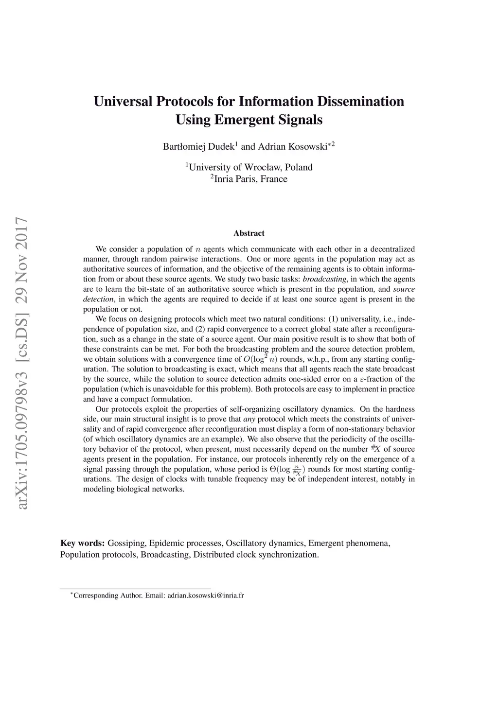 Universal Protocols for Information Dissemination Using Emergent Signals
