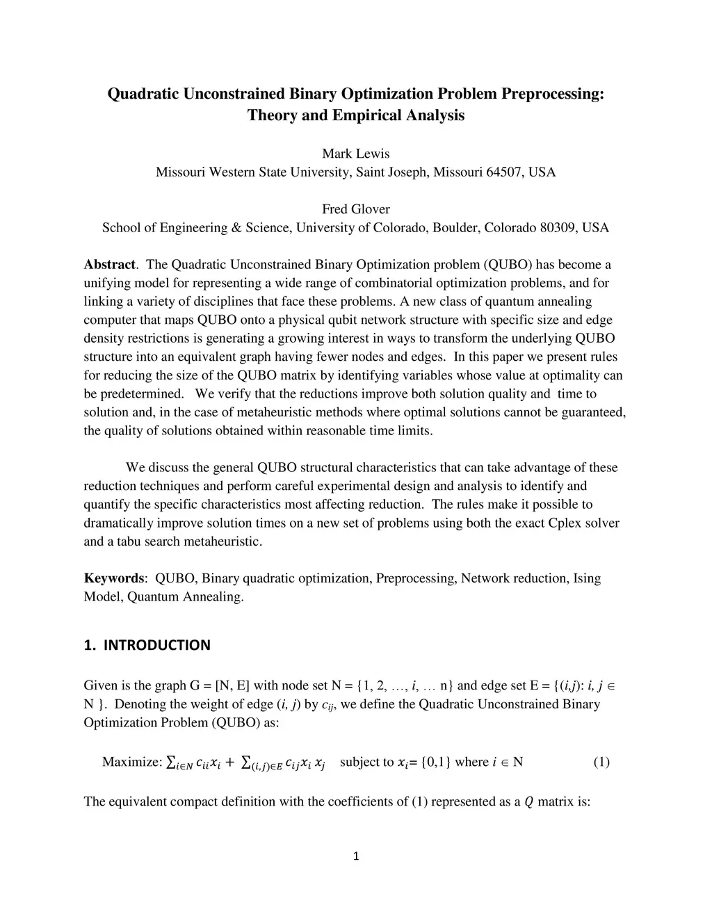 Quadratic Unconstrained Binary Optimization Problem Preprocessing: