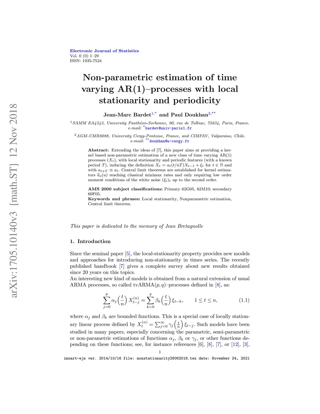 Extending the ideas of [7], this paper aims at providing a kernel based non-parametric estimation of a new class of time varying AR(1) processes (Xt), with local stationarity and periodic features (with a known period T), inducing the definition Xt = at(t/nT)X t--1 + t for t N and with a t+T at. Central limit theorems are established for kernel estima-tors as(u) reaching classical minimax rates and only requiring low order moment conditions of the white noise (t)t up to the second order.