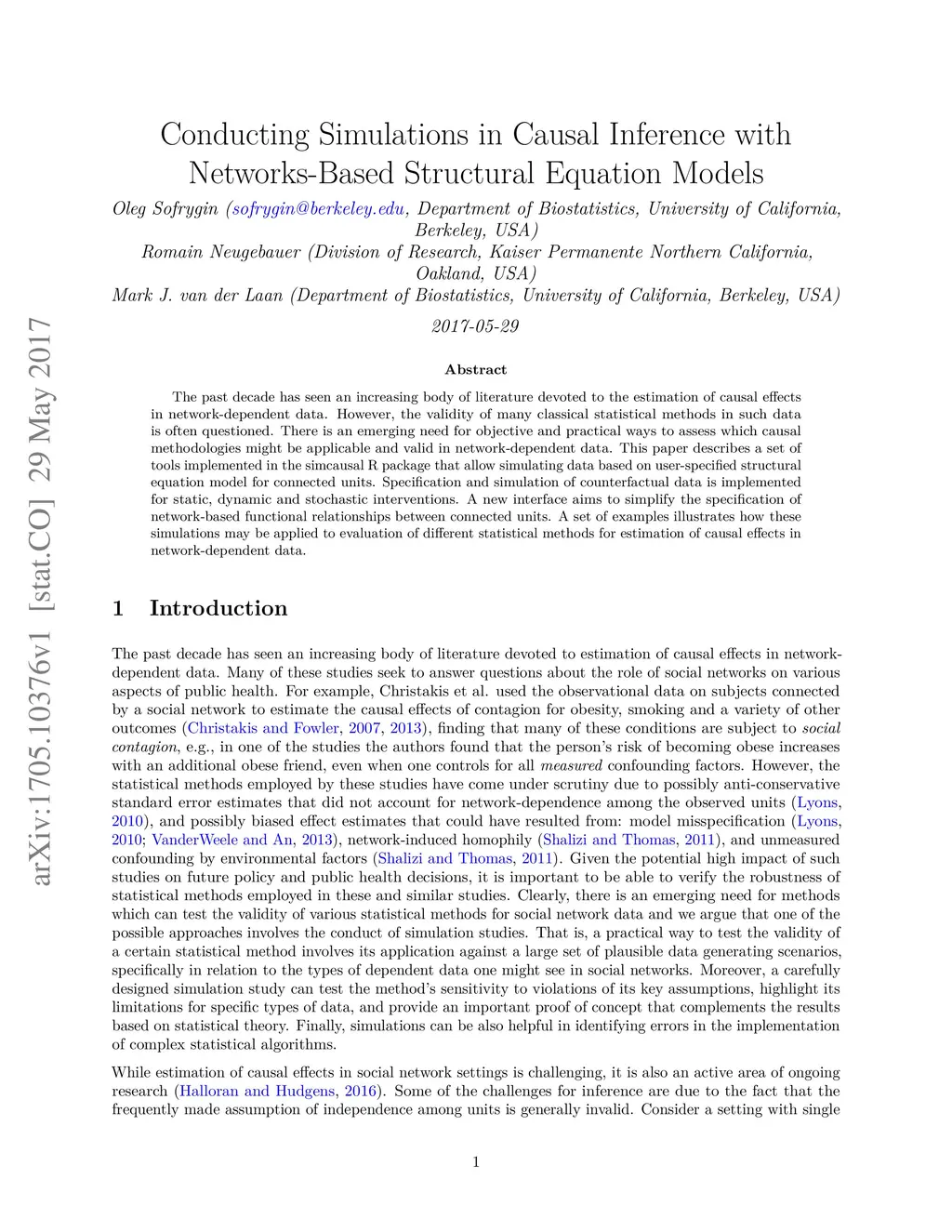 The past decade has seen an increasing body of literature devoted to the estimation of causal effects in network-dependent data. However, the validity of many classical statistical methods in such data is often questioned. There is an emerging need for objective and practical ways to assess which causal methodologies might be applicable and valid in network-dependent data. This paper describes a set of tools implemented in the simcausal R package that allow simulating data based on user-specified structural equation model for connected units. Specification and simulation of counterfactual data is implemented for static, dynamic and stochastic interventions. A new interface aims to simplify the specification of network-based functional relationships between connected units. A set of examples illustrates how these simulations may be applied to evaluation of different statistical methods for estimation of causal effects in network-dependent data.