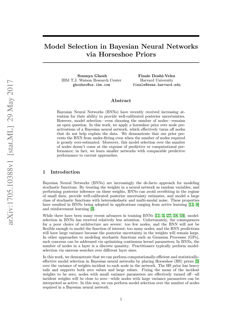 Bayesian Neural Networks (BNNs) have recently received increasing attention for their ability to provide well-calibrated posterior uncertainties. However, model selection---even choosing the number of nodes---remains an open question. In this work, we apply a horseshoe prior over node pre-activations of a Bayesian neural network, which effectively turns off nodes that do not help explain the data. We demonstrate that our prior prevents the BNN from under-fitting even when the number of nodes required is grossly over-estimated. Moreover, this model selection over the number of nodes doesn't come at the expense of predictive or computational performance; in fact, we learn smaller networks with comparable predictive performance to current approaches.