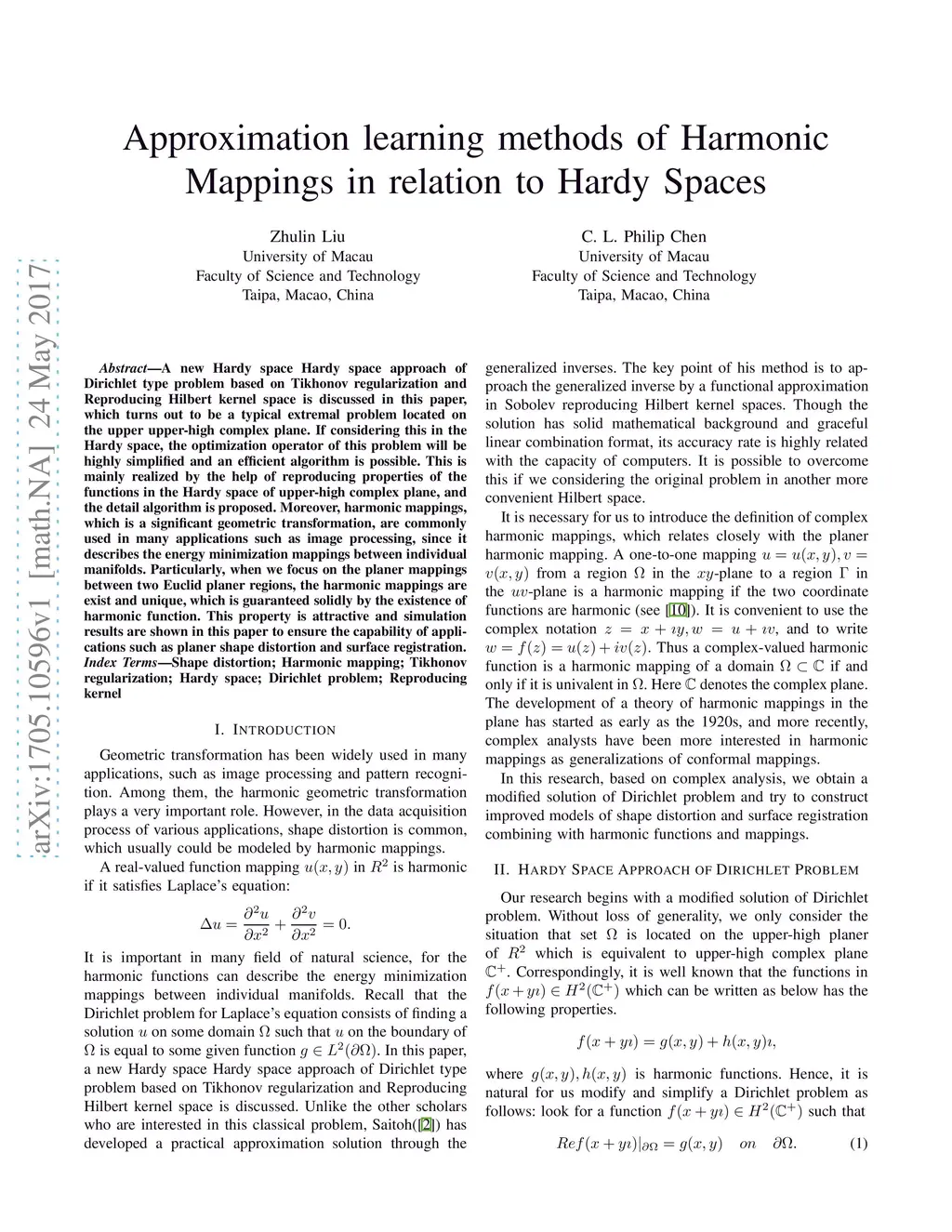 A new Hardy space Hardy space approach of Dirichlet type problem based on Tikhonov regularization and Reproducing Hilbert kernel space is discussed in this paper, which turns out to be a typical extremal problem located on the upper upper-high complex plane. If considering this in the Hardy space, the optimization operator of this problem will be highly simplified and an efficient algorithm is possible. This is mainly realized by the help of reproducing properties of the functions in the Hardy space of upper-high complex plane, and the detail algorithm is proposed. Moreover, harmonic mappings, which is a significant geometric transformation, are commonly used in many applications such as image processing, since it describes the energy minimization mappings between individual manifolds. Particularly, when we focus on the planer mappings between two Euclid planer regions, the harmonic mappings are exist and unique, which is guaranteed solidly by the existence of harmonic function. This property is attractive and simulation results are shown in this paper to ensure the capability of applications such as planer shape distortion and surface registration.