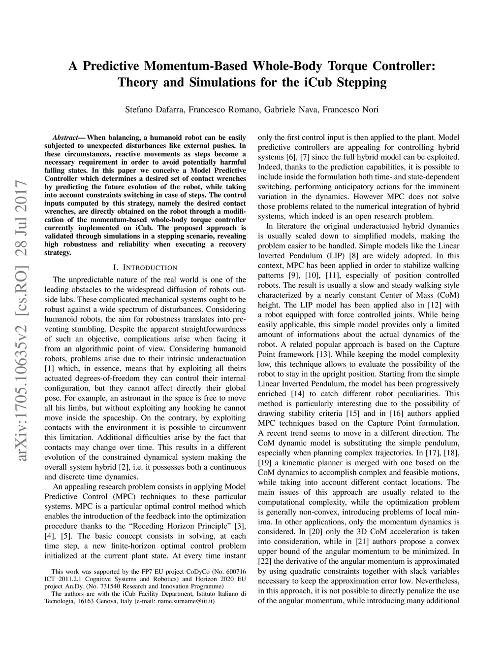 A Predictive Momentum-Based Whole-Body Torque Controller: Theory and