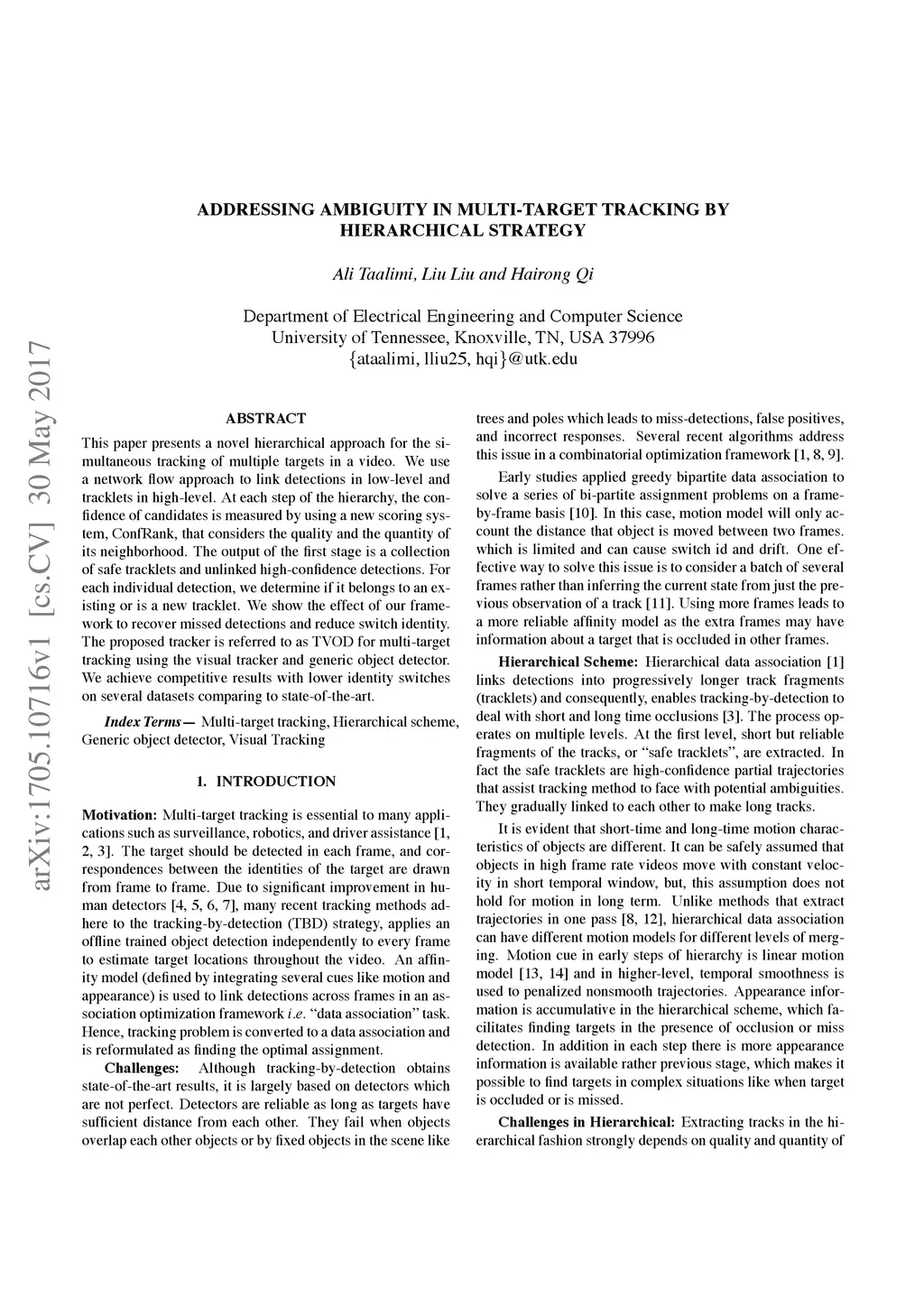 Addressing Ambiguity in Multi-target Tracking by Hierarchical Strategy