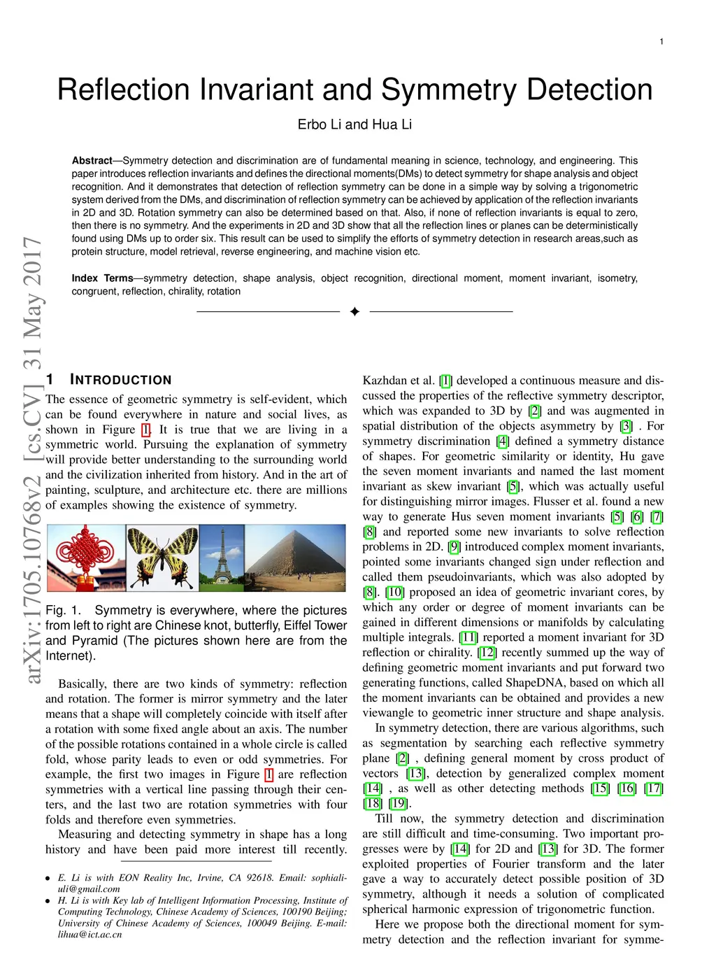 Reflection Invariant and Symmetry Detection