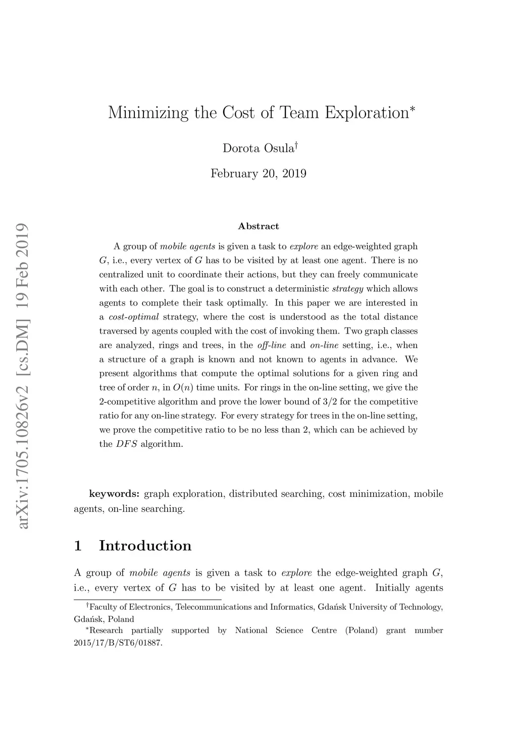 A group of mobile agents is given a task to explore an edge-weighted graph , i.e., every vertex of has to be visited by at least one agent. There is no centralized unit to coordinate their actions, but they can freely communicate with each other. The goal is to construct a deterministic strategy which allows agents to complete their task optimally. In this paper we are interested in a cost-optimal strategy, where the cost is understood as the total distance traversed by agents coupled with the cost of invoking them. Two graph classes are analyzed, rings and trees, in the off-line and on-line setting, i.e., when a structure of a graph is known and not known to agents in advance. We present algorithms that compute the optimal solutions for a given ring and tree of order , in time units. For rings in the on-line setting, we give the -competitive algorithm and prove the lower bound of for the competitive ratio for any on-line strategy. For every strategy for trees in the on-line setting, we prove the competitive ratio to be no less than , which can be achieved by the algorithm.