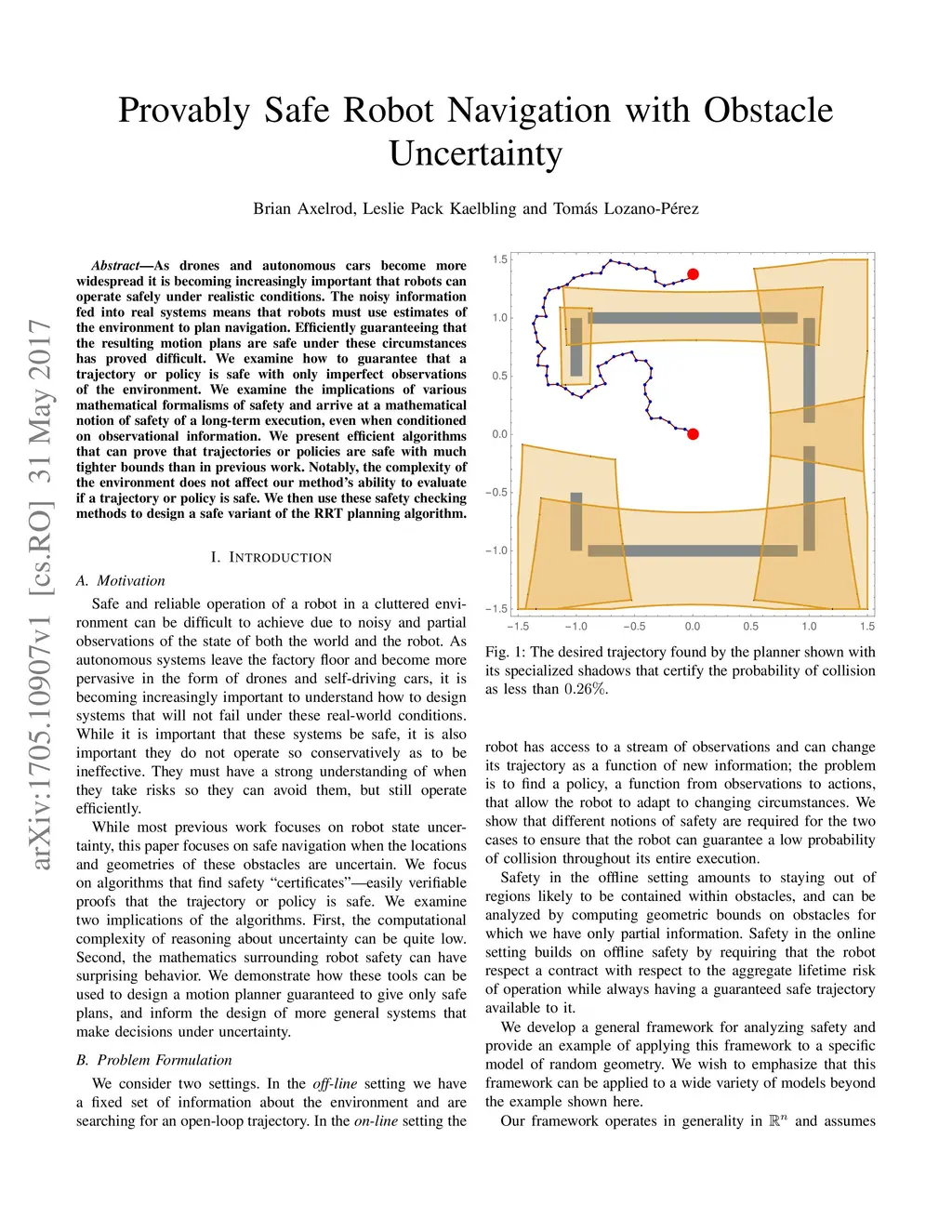 Provably Safe Robot Navigation with Obstacle Uncertainty