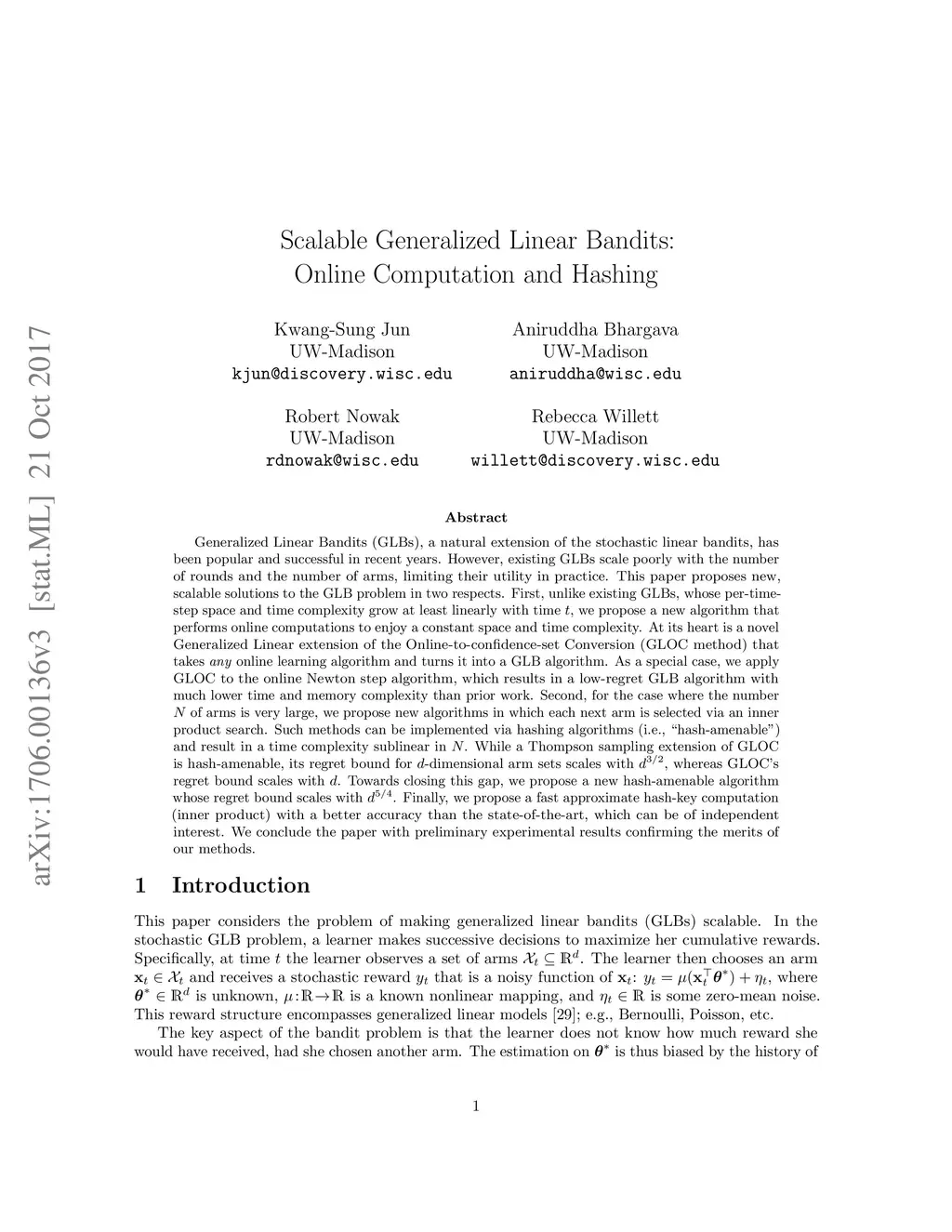Scalable Generalized Linear Bandits: Online Computation and Hashing
