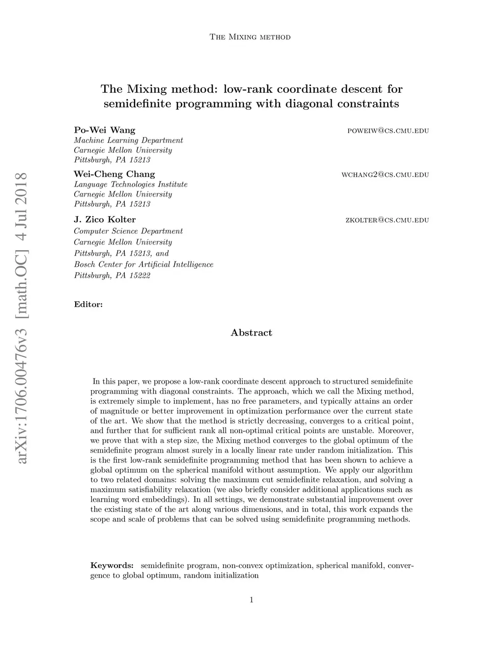 The Mixing method: coordinate descent for low-rank semidefinite