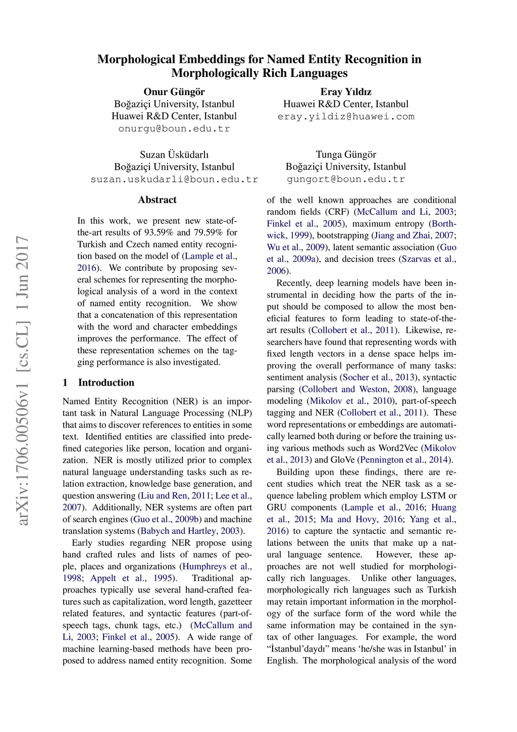 Morphological Embeddings for Named Entity Recognition in Morphologically