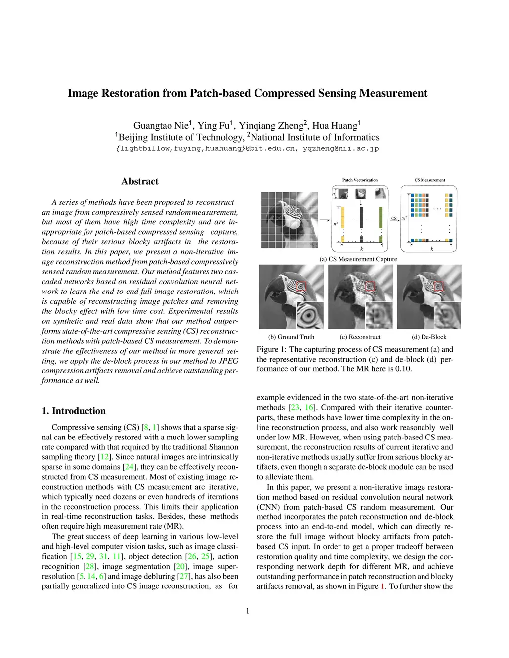 Image Restoration from Patch-based Compressed Sensing Measurement