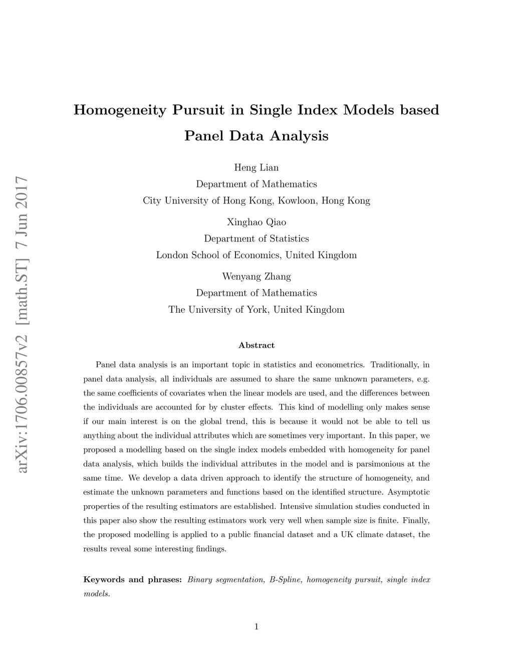 Panel data analysis is an important topic in statistics and econometrics. Traditionally, in panel data analysis, all individuals are assumed to share the same unknown parameters, e.g. the same coefficients of covariates when the linear models are used, and the differences between the individuals are accounted for by cluster effects. This kind of modelling only makes sense if our main interest is on the global trend, this is because it would not be able to tell us anything about the individual attributes which are sometimes very important. In this paper, we proposed a modelling based on the single index models embedded with homogeneity for panel data analysis, which builds the individual attributes in the model and is parsimonious at the same time. We develop a data driven approach to identify the structure of homogeneity, and estimate the unknown parameters and functions based on the identified structure. Asymptotic properties of the resulting estimators are established. Intensive simulation studies conducted in this paper also show the resulting estimators work very well when sample size is finite. Finally, the proposed modelling is applied to a public financial dataset and a UK climate dataset, the results reveal some interesting findings.