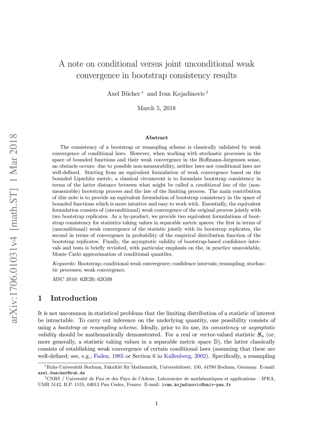 The consistency of a bootstrap or resampling scheme is classically validated by weak convergence of conditional laws. However, when working with stochastic processes in the space of bounded functions and their weak convergence in the Hoffmann-J{\o}rgensen sense, an obstacle occurs: due to possible non-measurability, neither laws nor conditional laws are well-defined. Starting from an equivalent formulation of weak convergence based on the bounded Lipschitz metric, a classical circumvent is to formulate bootstrap consistency in terms of the latter distance between what might be called a \emph{conditional law} of the (non-measurable) bootstrap process and the law of the limiting process. The main contribution of this note is to provide an equivalent formulation of bootstrap consistency in the space of bounded functions which is more intuitive and easy to work with. Essentially, the equivalent formulation consists of (unconditional) weak convergence of the original process jointly with two bootstrap replicates. As a by-product, we provide two equivalent formulations of bootstrap consistency for statistics taking values in separable metric spaces: the first in terms of (unconditional) weak convergence of the statistic jointly with its bootstrap replicates, the second in terms of convergence in probability of the empirical distribution function of the bootstrap replicates. Finally, the asymptotic validity of bootstrap-based confidence intervals and tests is briefly revisited, with particular emphasis on the, in practice unavoidable, Monte Carlo approximation of conditional quantiles.