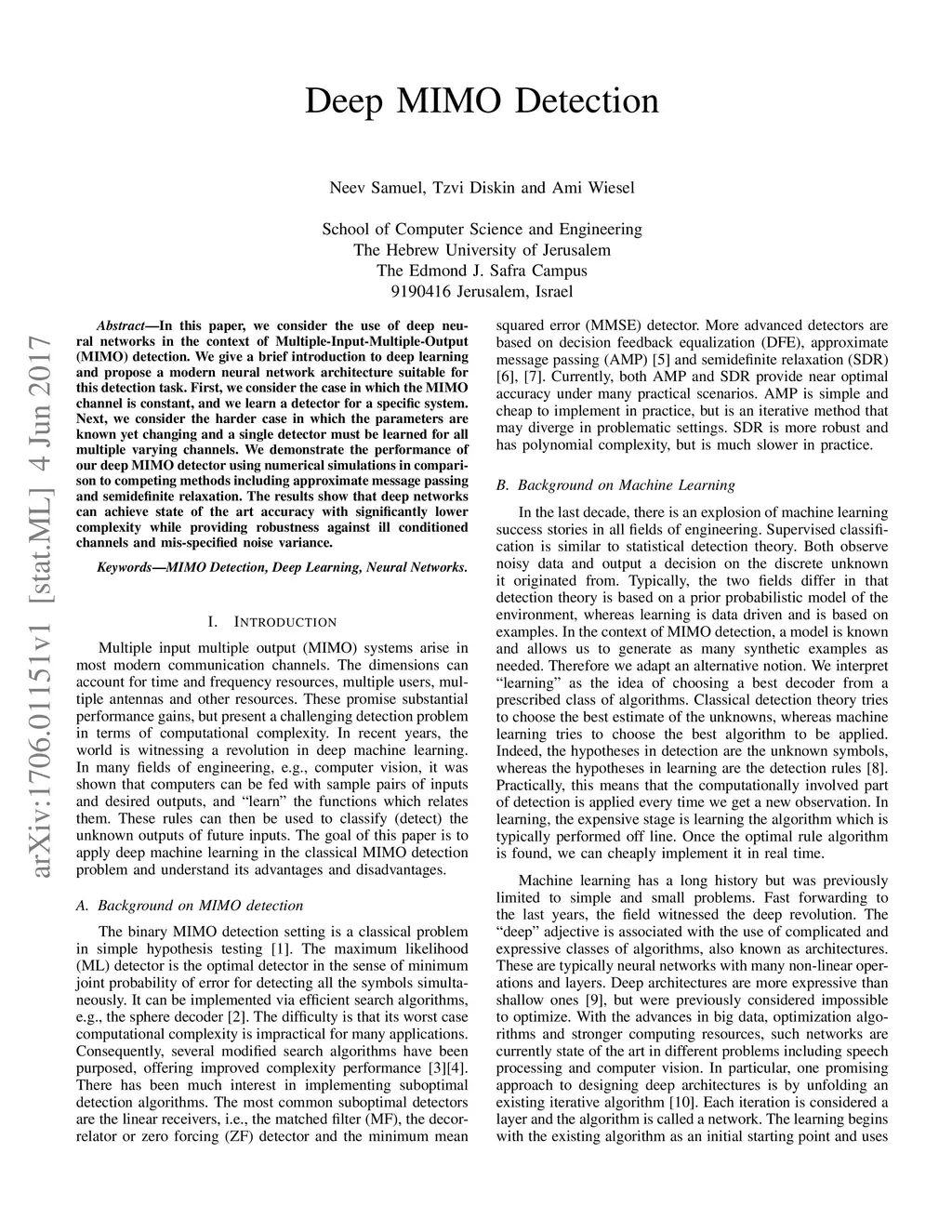 In this paper, we consider the use of deep neural networks in the context of Multiple-Input-Multiple-Output (MIMO) detection. We give a brief introduction to deep learning and propose a modern neural network architecture suitable for this detection task. First, we consider the case in which the MIMO channel is constant, and we learn a detector for a specific system. Next, we consider the harder case in which the parameters are known yet changing and a single detector must be learned for all multiple varying channels. We demonstrate the performance of our deep MIMO detector using numerical simulations in comparison to competing methods including approximate message passing and semidefinite relaxation. The results show that deep networks can achieve state of the art accuracy with significantly lower complexity while providing robustness against ill conditioned channels and mis-specified noise variance.