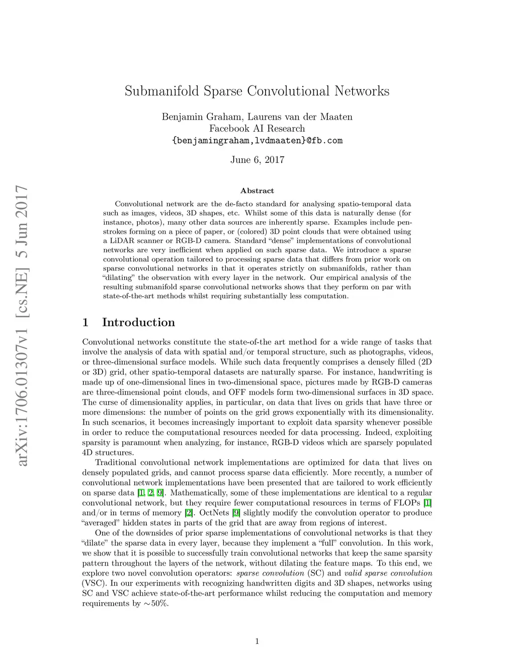Convolutional network are the de-facto standard for analysing spatio-temporal data such as images, videos, 3D shapes, etc. Whilst some of this data is naturally dense (for instance, photos), many other data sources are inherently sparse. Examples include pen-strokes forming on a piece of paper, or (colored) 3D point clouds that were obtained using a LiDAR scanner or RGB-D camera. Standard "dense" implementations of convolutional networks are very inefficient when applied on such sparse data. We introduce a sparse convolutional operation tailored to processing sparse data that differs from prior work on sparse convolutional networks in that it operates strictly on submanifolds, rather than "dilating" the observation with every layer in the network. Our empirical analysis of the resulting submanifold sparse convolutional networks shows that they perform on par with state-of-the-art methods whilst requiring substantially less computation.