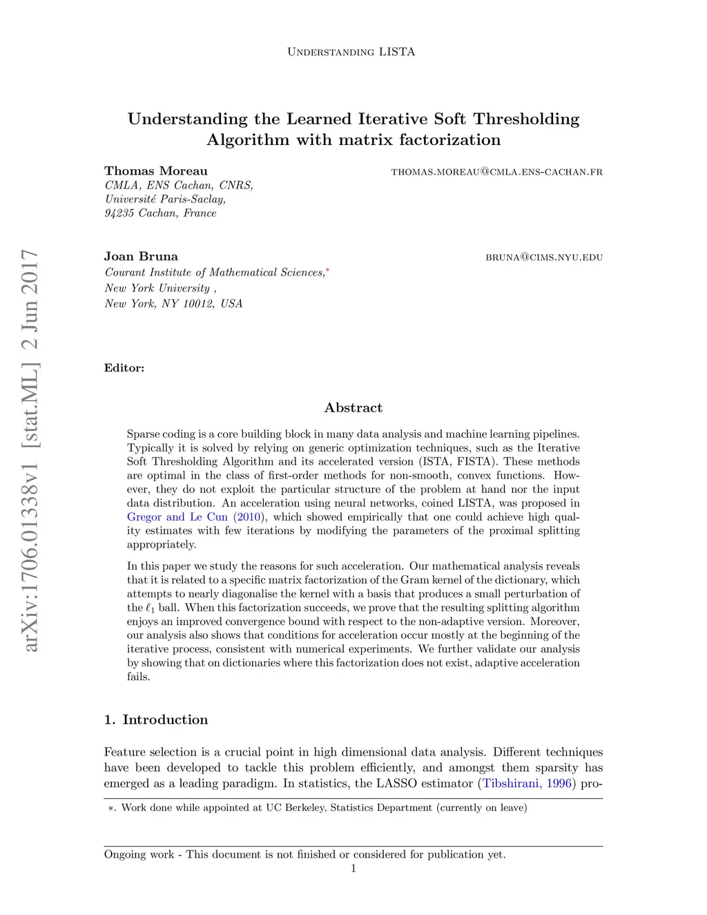 Sparse coding is a core building block in many data analysis and machine learning pipelines. Typically it is solved by relying on generic optimization techniques, such as the Iterative Soft Thresholding Algorithm and its accelerated version (ISTA, FISTA). These methods are optimal in the class of first-order methods for non-smooth, convex functions. However, they do not exploit the particular structure of the problem at hand nor the input data distribution. An acceleration using neural networks, coined LISTA, was proposed in Gregor and Le Cun (2010), which showed empirically that one could achieve high quality estimates with few iterations by modifying the parameters of the proximal splitting appropriately. In this paper we study the reasons for such acceleration. Our mathematical analysis reveals that it is related to a specific matrix factorization of the Gram kernel of the dictionary, which attempts to nearly diagonalise the kernel with a basis that produces a small perturbation of the ball. When this factorization succeeds, we prove that the resulting splitting algorithm enjoys an improved convergence bound with respect to the non-adaptive version. Moreover, our analysis also shows that conditions for acceleration occur mostly at the beginning of the iterative process, consistent with numerical experiments. We further validate our analysis by showing that on dictionaries where this factorization does not exist, adaptive acceleration fails.