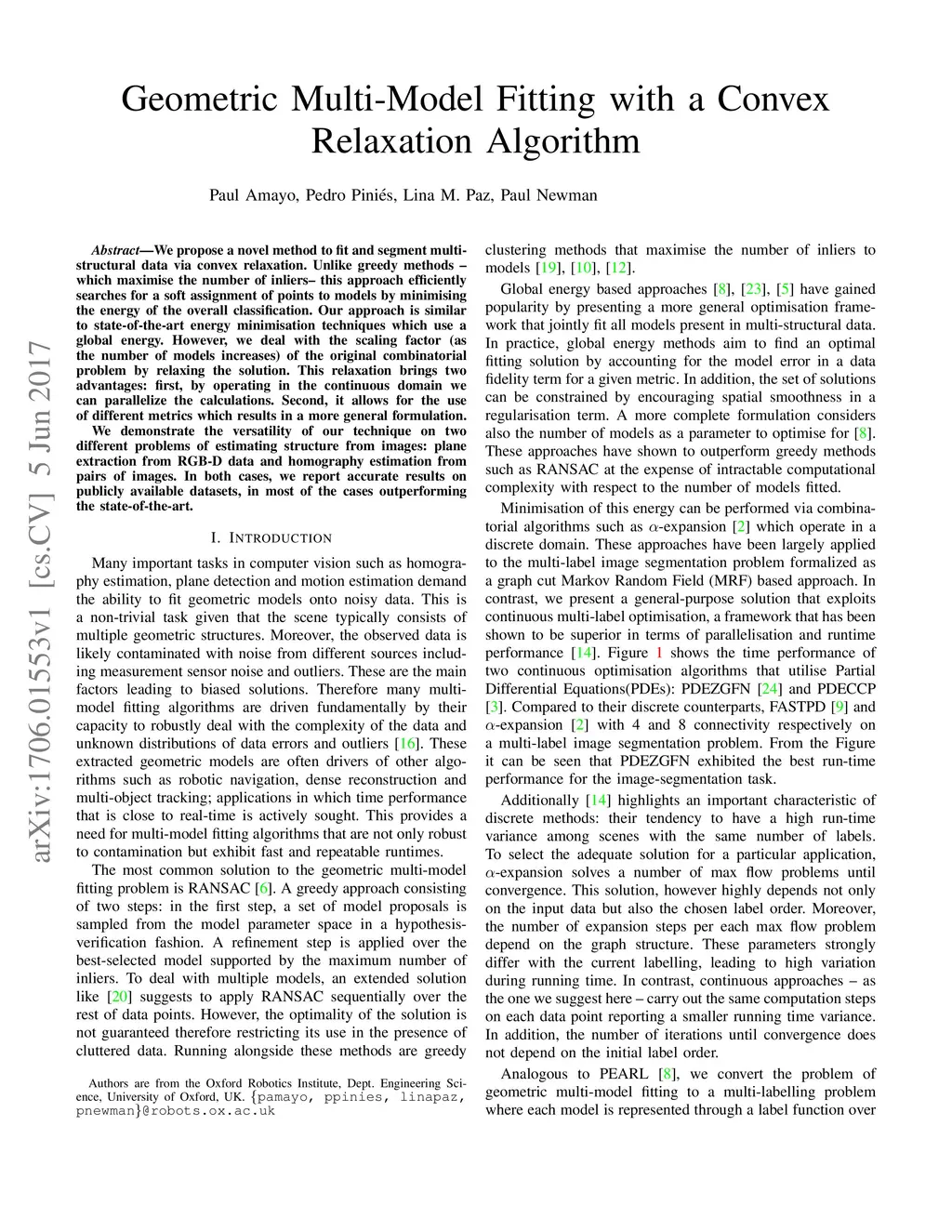 Geometric Multi-Model Fitting with a Convex Relaxation Algorithm