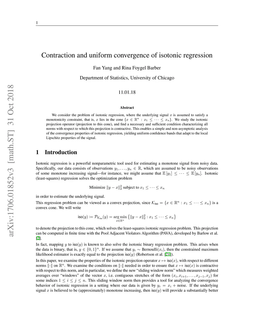 We consider the problem of isotonic regression, where the underlying signal is assumed to satisfy a monotonicity constraint, that is, lies in the cone . We study the isotonic projection operator (projection to this cone), and find a necessary and sufficient condition characterizing all norms with respect to which this projection is contractive. This enables a simple and non-asymptotic analysis of the convergence properties of isotonic regression, yielding uniform confidence bands that adapt to the local Lipschitz properties of the signal.