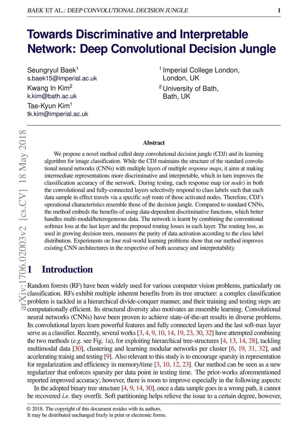 Deep Convolutional Decision Jungle for Image Classification