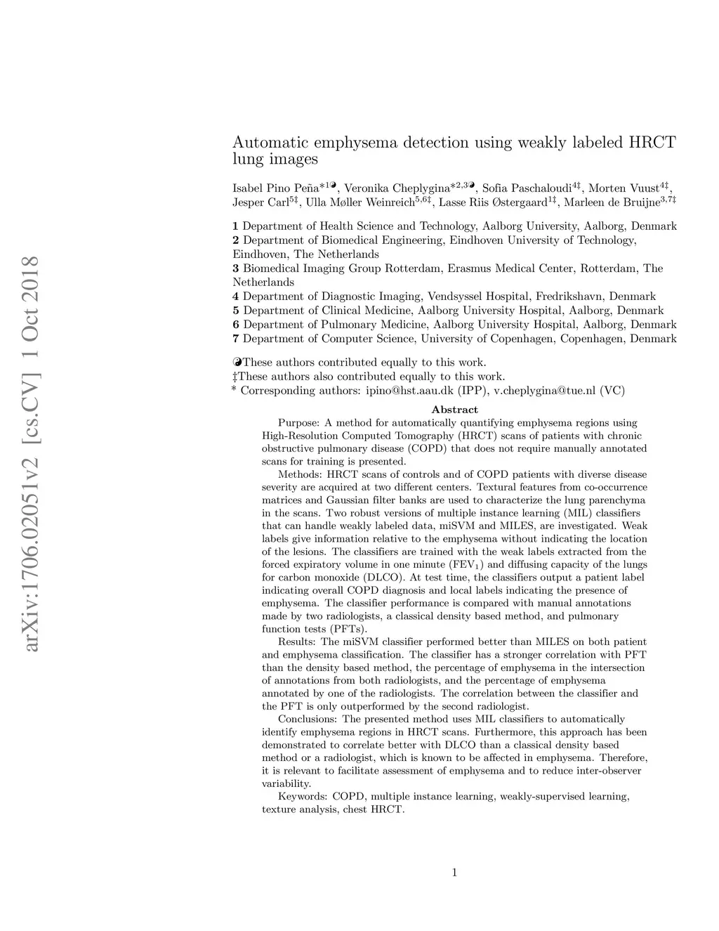 Automatic Emphysema Detection using Weakly Labeled HRCT Lung Images