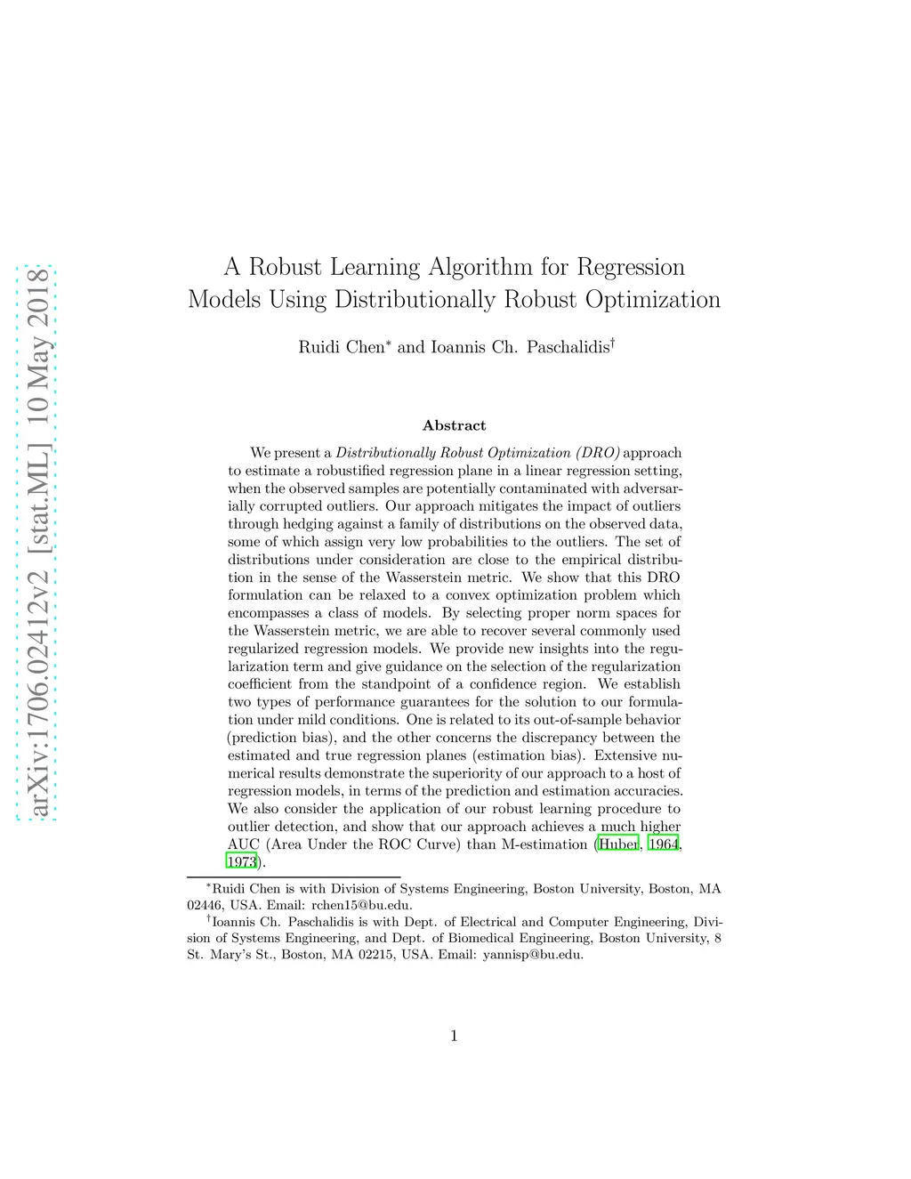 A Robust Learning Algorithm for Regression Models Using Distributionally