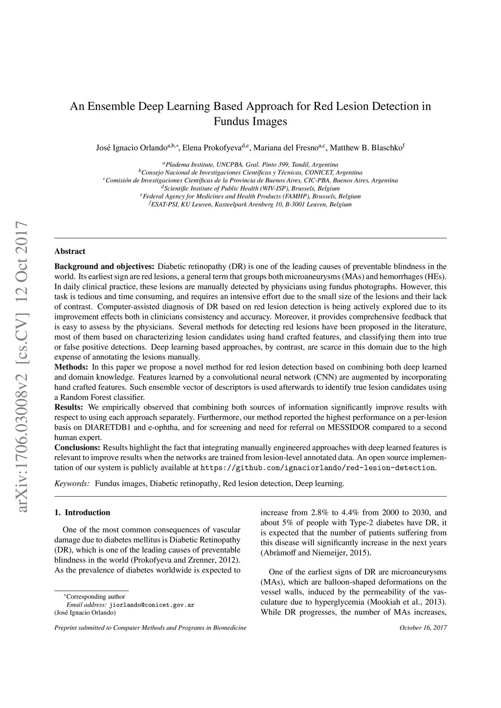 An Ensemble Deep Learning Based Approach for Red Lesion Detection in