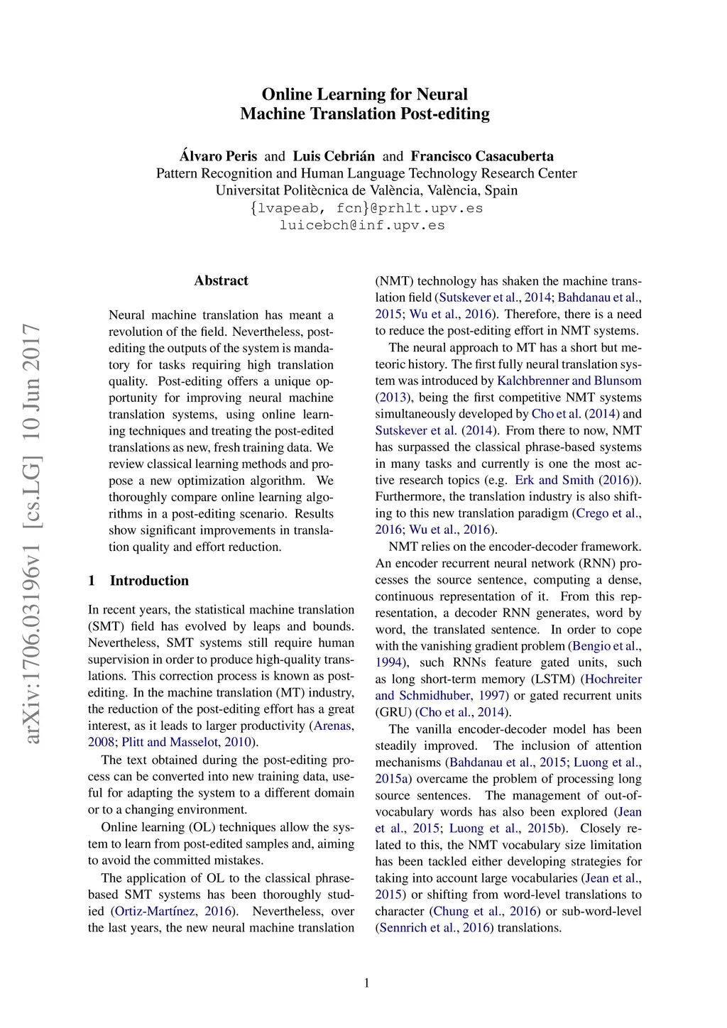 Neural machine translation has meant a revolution of the field. Nevertheless, post-editing the outputs of the system is mandatory for tasks requiring high translation quality. Post-editing offers a unique opportunity for improving neural machine translation systems, using online learning techniques and treating the post-edited translations as new, fresh training data. We review classical learning methods and propose a new optimization algorithm. We thoroughly compare online learning algorithms in a post-editing scenario. Results show significant improvements in translation quality and effort reduction.
