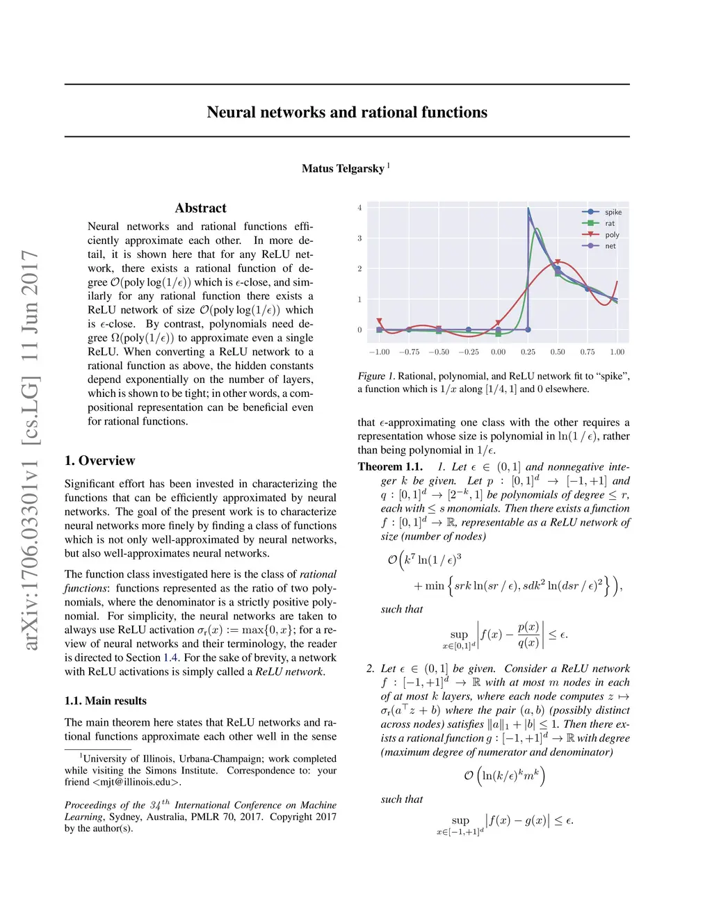 Neural networks and rational functions efficiently approximate each other. In more detail, it is shown here that for any ReLU network, there exists a rational function of degree which is -close, and similarly for any rational function there exists a ReLU network of size which is -close. By contrast, polynomials need degree to approximate even a single ReLU. When converting a ReLU network to a rational function as above, the hidden constants depend exponentially on the number of layers, which is shown to be tight; in other words, a compositional representation can be beneficial even for rational functions.