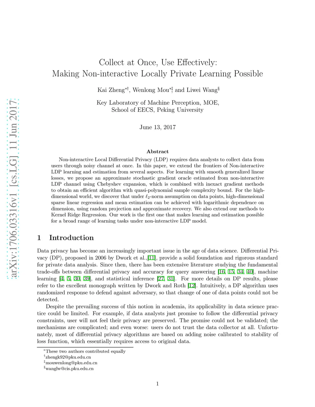 Collect at Once, Use Effectively: Making Non-interactive Locally Private