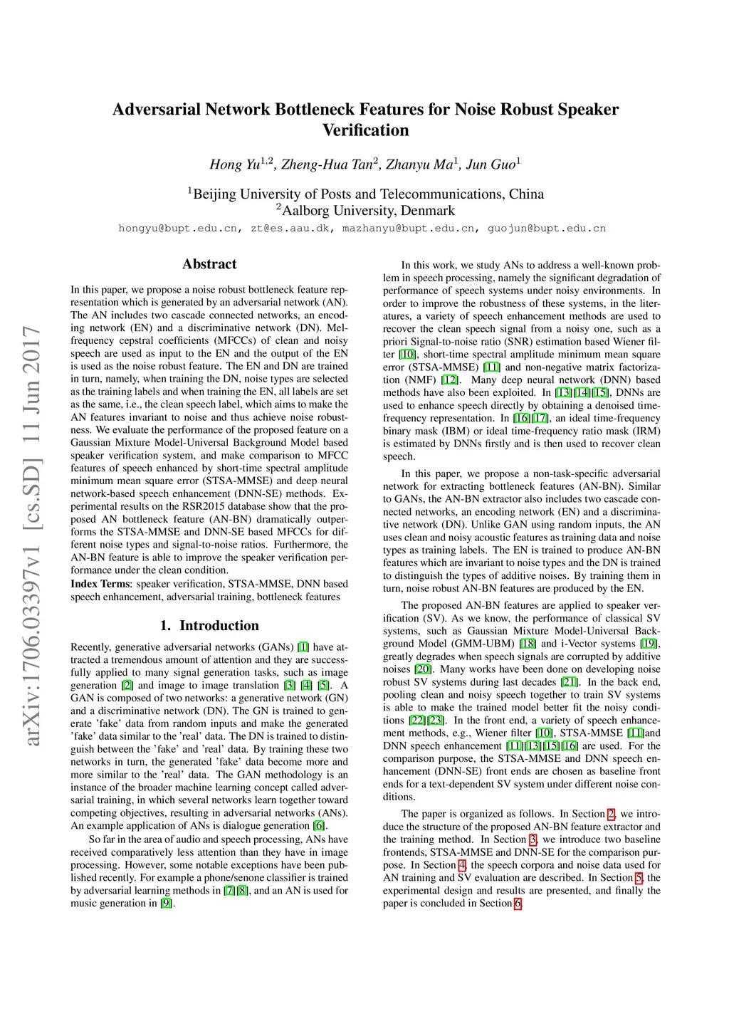 Adversarial Network Bottleneck Features for Noise Robust Speaker