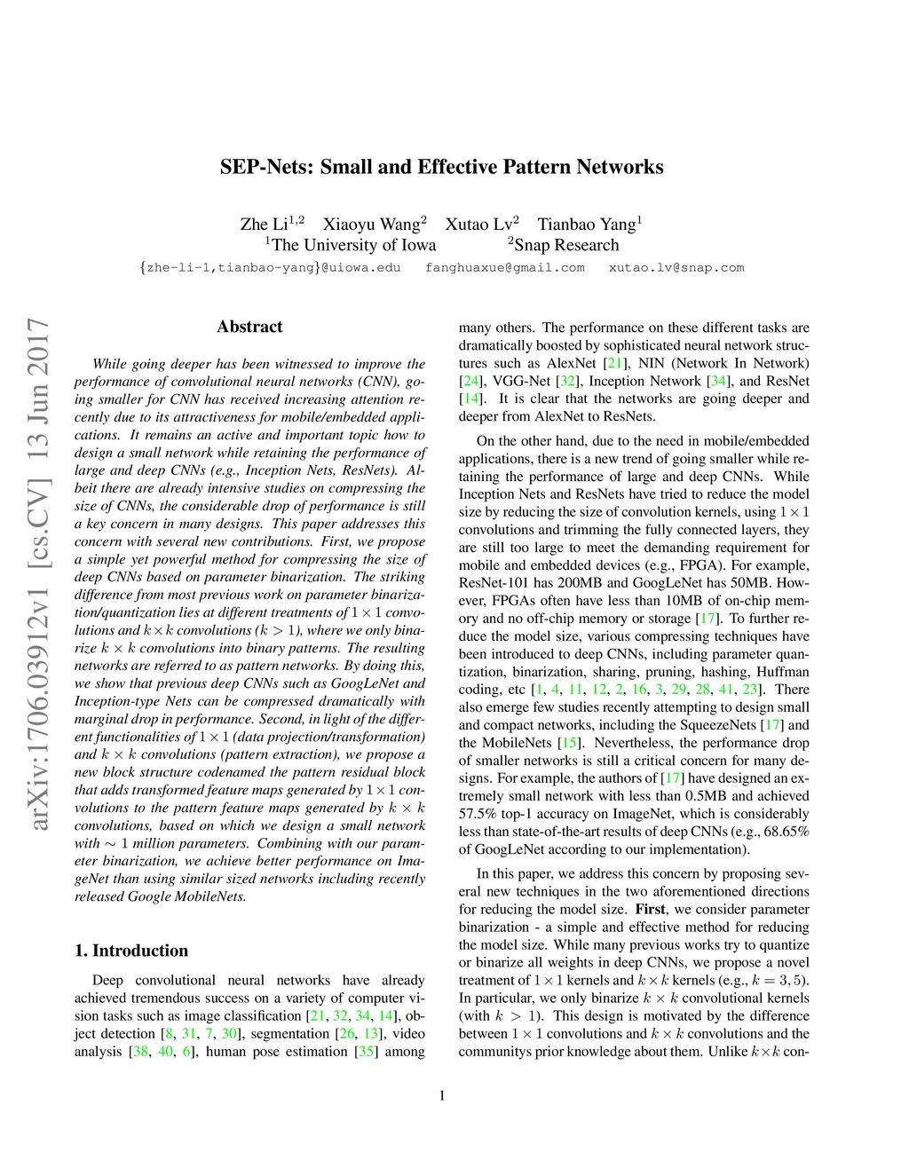 SEP-Nets: Small and Effective Pattern Networks