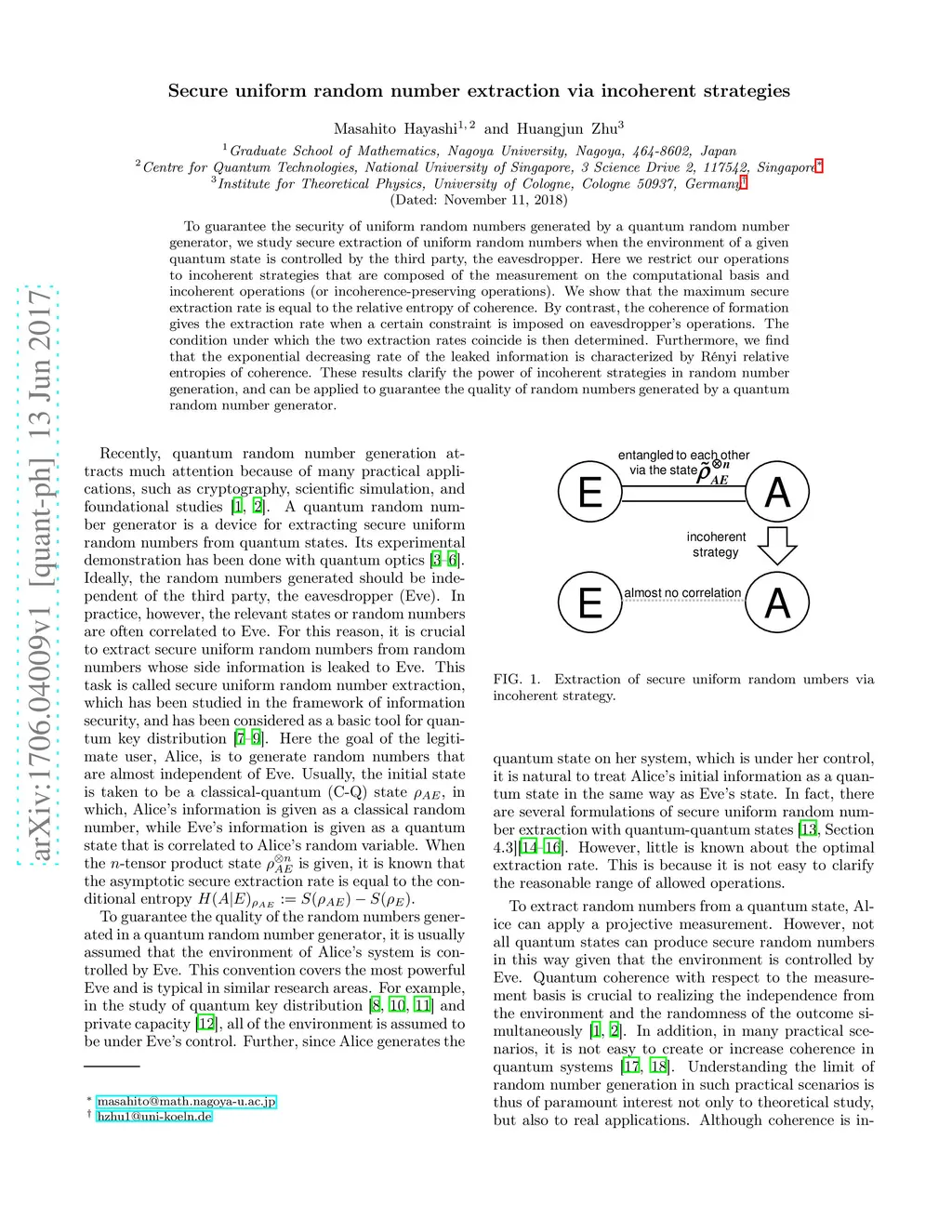 Secure uniform random number extraction via incoherent strategies