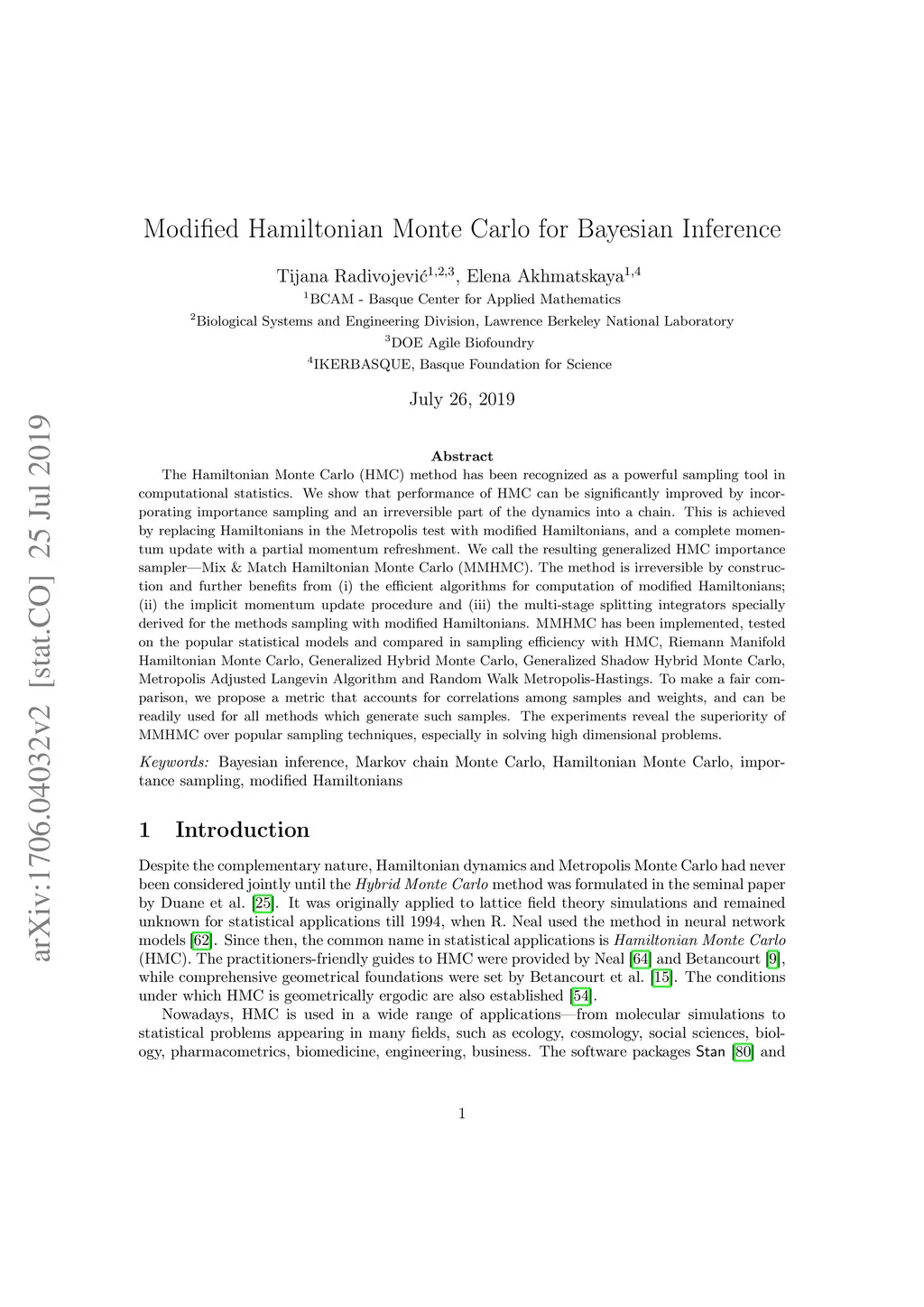 Modified Hamiltonian Monte Carlo for Bayesian inference