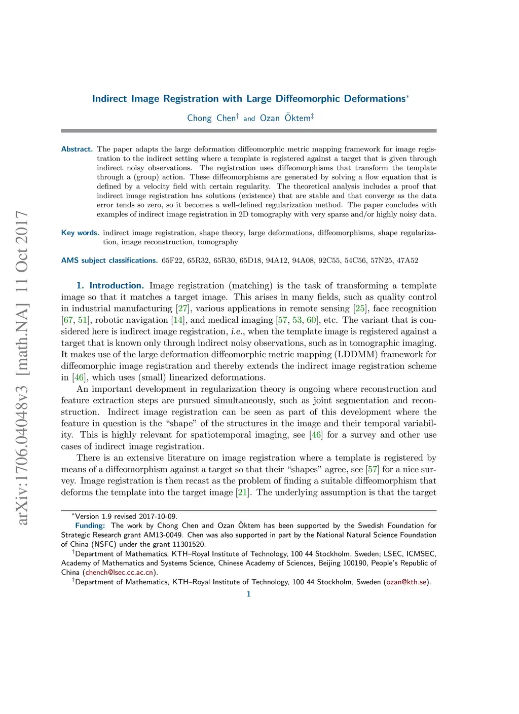 Indirect Image Registration with Large Diffeomorphic Deformations