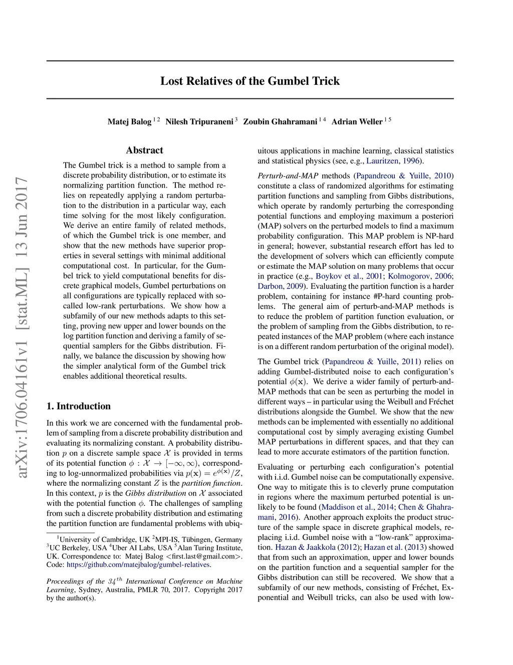 The Gumbel trick is a method to sample from a discrete probability distribution, or to estimate its normalizing partition function. The method relies on repeatedly applying a random perturbation to the distribution in a particular way, each time solving for the most likely configuration. We derive an entire family of related methods, of which the Gumbel trick is one member, and show that the new methods have superior properties in several settings with minimal additional computational cost. In particular, for the Gumbel trick to yield computational benefits for discrete graphical models, Gumbel perturbations on all configurations are typically replaced with so-called low-rank perturbations. We show how a subfamily of our new methods adapts to this setting, proving new upper and lower bounds on the log partition function and deriving a family of sequential samplers for the Gibbs distribution. Finally, we balance the discussion by showing how the simpler analytical form of the Gumbel trick enables additional theoretical results.
