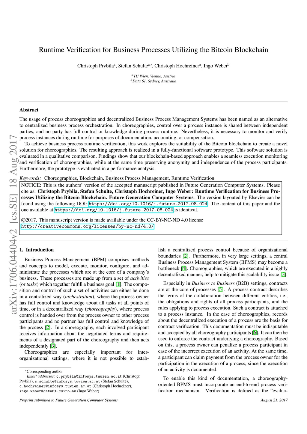 Runtime Verification for Business Processes Utilizing the Bitcoin
