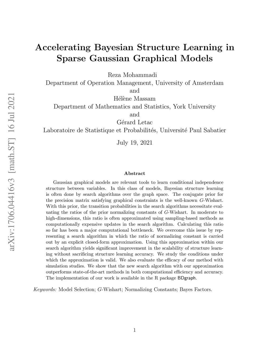 Accelerating Bayesian Structure Learning in Sparse Gaussian Graphical