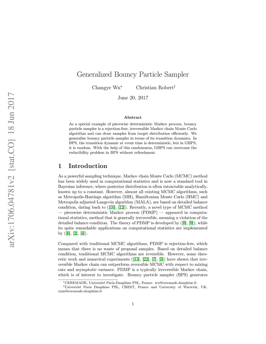 As a special example of piecewise deterministic Markov process, bouncy particle sampler is a rejection-free, irreversible Markov chain Monte Carlo algorithm and can draw samples from target distribution efficiently. We generalize bouncy particle sampler in terms of its transition dynamics. In BPS, the transition dynamic at event time is deterministic, but in GBPS, it is random. With the help of this randomness, GBPS can overcome the reducibility problem in BPS without refreshement.